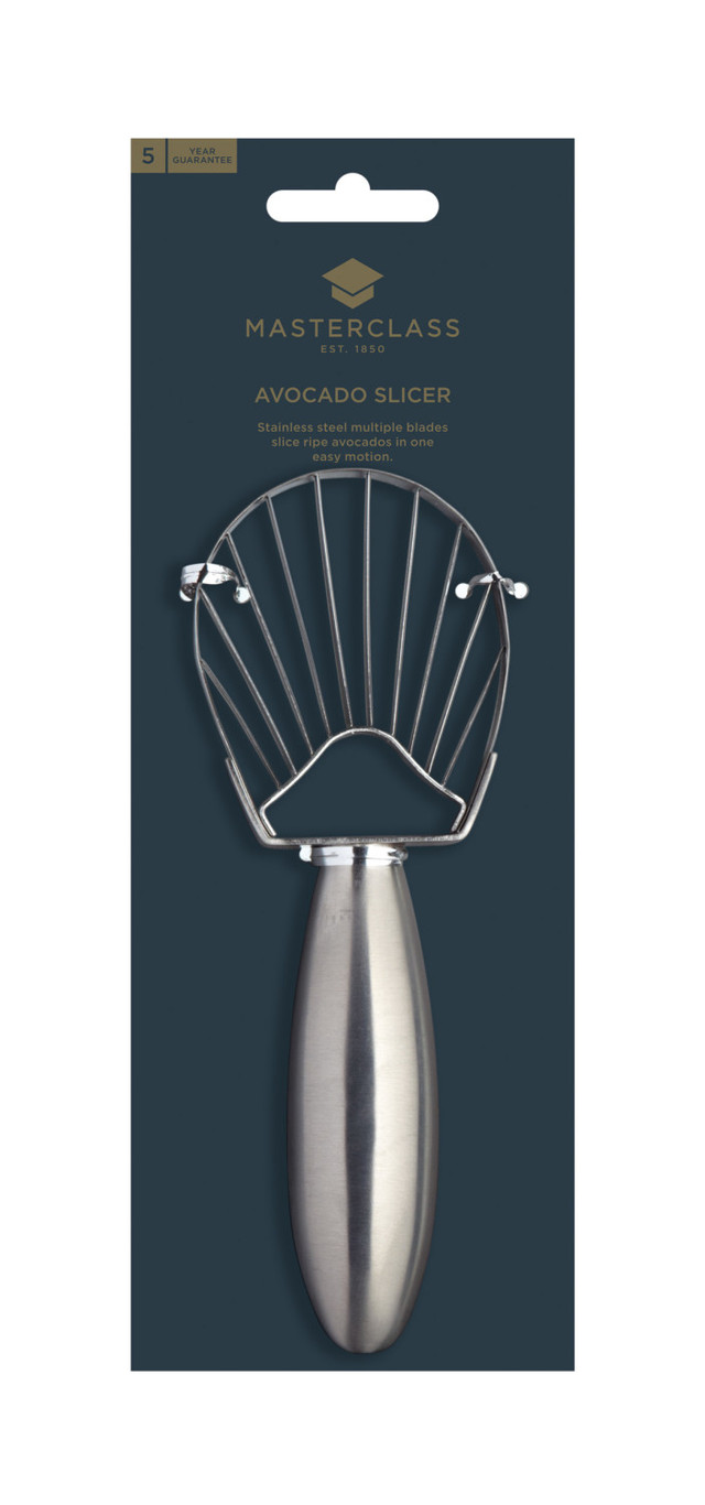 Genießen Sie köstliche Avocados ohne Unordnung und umständliche Zubereitung. Der MasterClass Edelstahl-Avocadoschneider und -ausstecher nimmt Ihnen die ganze Arbeit ab, vom Ausstechen des Fruchtfleischs aus der Schale bis zum Schneiden in Scheiben. Mit einer schnellen, schwungvollen Bewegung können Sie perfekte Scheiben der gesunden, nährstoffreichen Avocado genießen. Das Gerät misst 18 cm (7 Zoll) und ist für die meisten mittelgroßen, reifen Avocados geeignet. Es ist ideal für die Zubereitung von Avocadosalaten, zum Aushöhlen des Fruchtfleischs für Guacamole oder einfach für einen schnellen, gesunden Snack. Und damit Sie sich keine Sorgen machen müssen, hat MasterClass eine 5-Jahres-Garantie.
