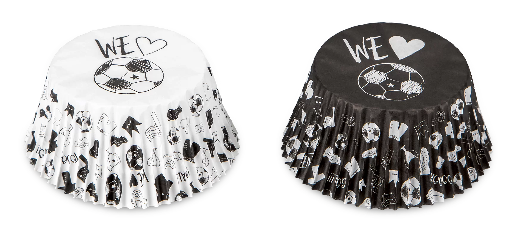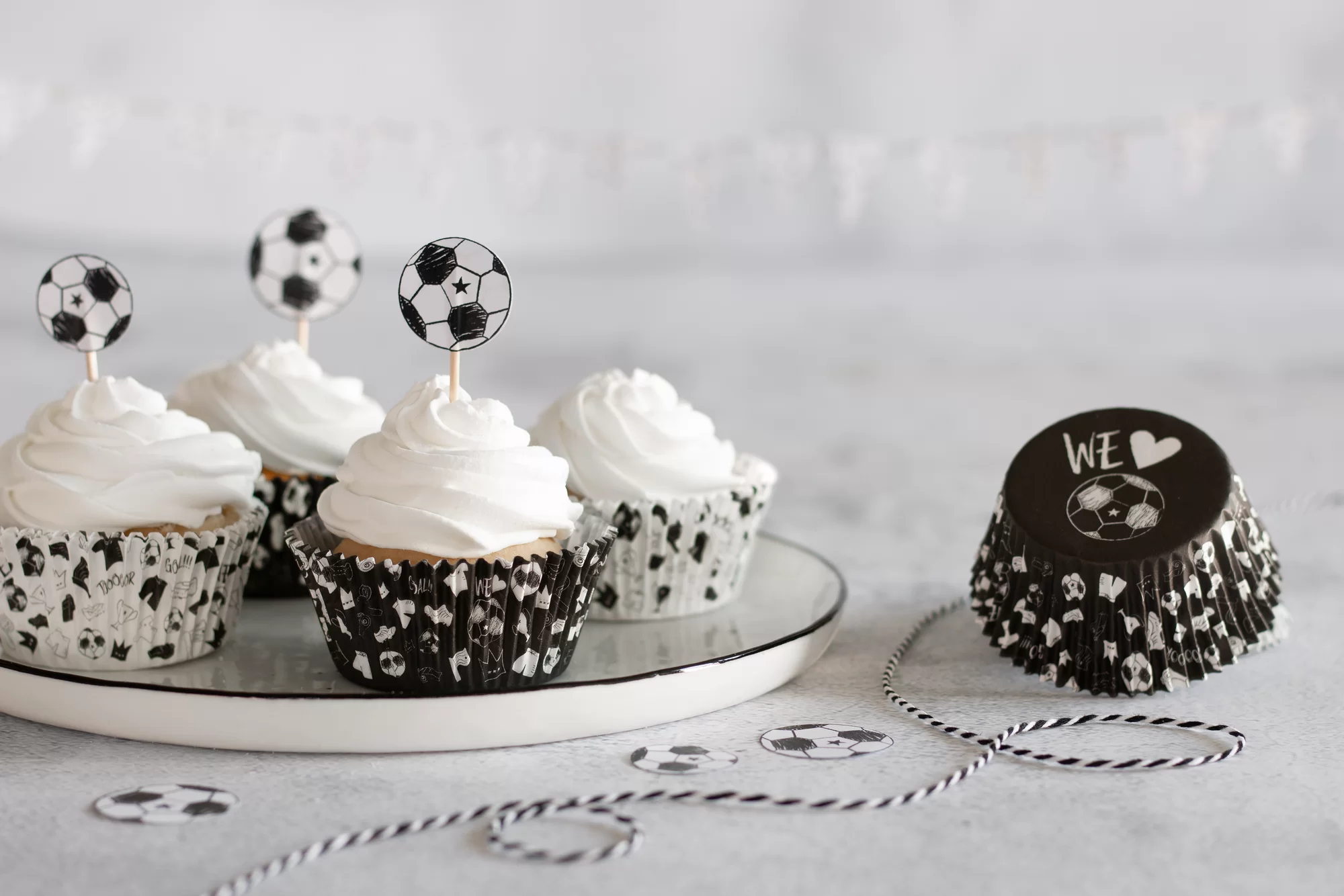 Der Ball muss ins Tor und der Muffin ins Förmchen. Mit unseren Fußballmotiven spielen auch Ihre Muffins in der ersten Liga!