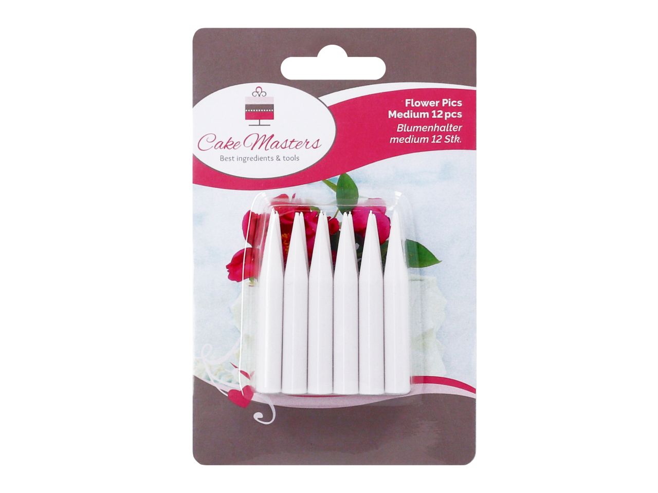 Die Blumenhalter ermöglichen ein sicheres Dekorieren Ihrer Torten mit echten oder künstlichen Blumen und Blüten. Ein Kontakt der Blumenstiele oder Drähte mit der Torte wird durch die Flower Pics vermieden und echte Blüten können mit Wasser versorgt werden.