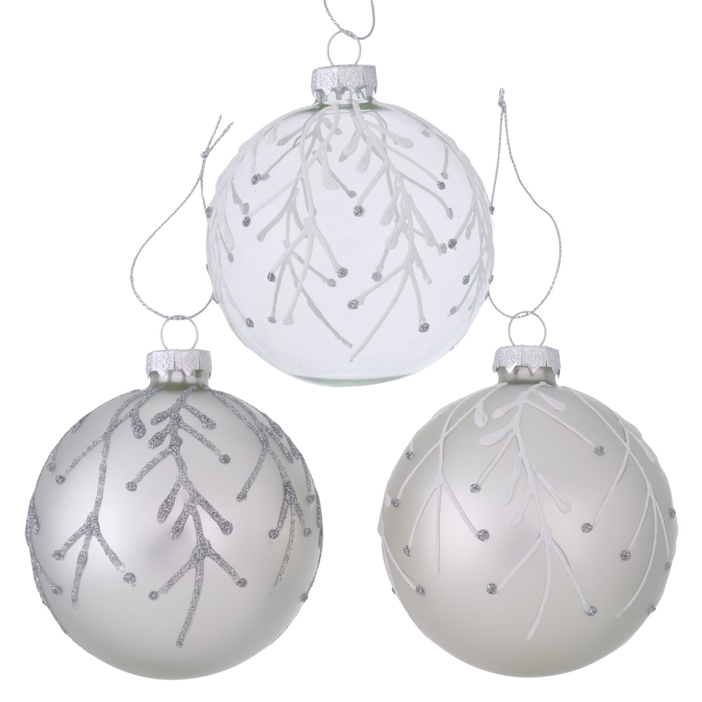 Die Weihnachtskugel „Filigra“ verbindet handwerkliche Kunst mit natürlicher Eleganz. Gefertigt aus handbemaltem, lackiertem Glas und Aluminium, begeistert sie mit einem mehrfarbigen Design in Silber und Weiß. Die Kombination aus matten und glitzernden Oberflächen verleiht der Kugel eine edle, festliche Ausstrahlung.