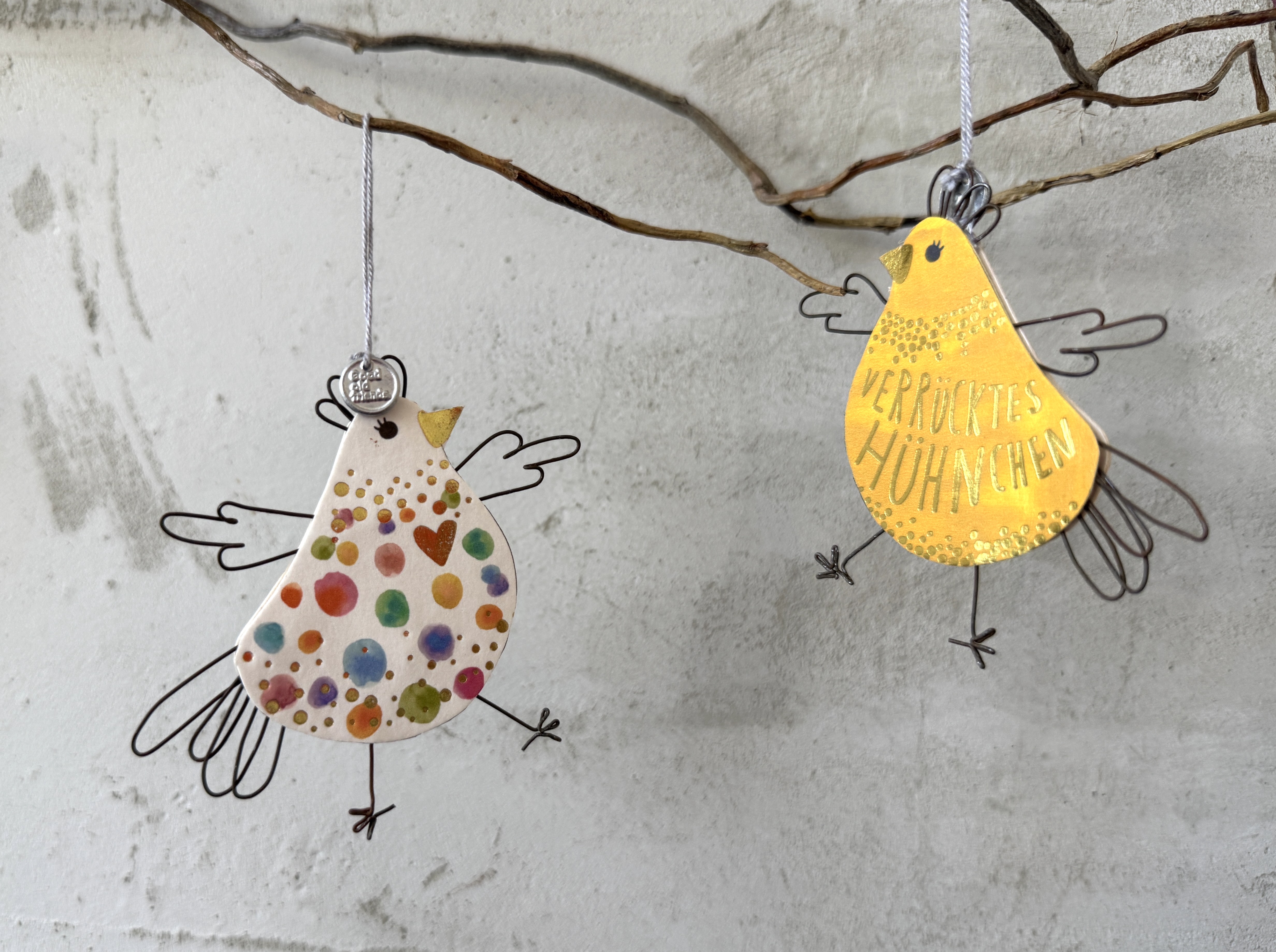 Gefertigt aus filigranem Draht und hochwertiger, doppelseitig bedruckter Pappe, sind diese Anhänger kleine handwerkliche Kunstwerke. Ob am klassischen Osterstrauch, als fröhlicher Akzent im Fenster oder als origineller Geschenkanhänger für das Osternest – die Crazy Chicks sorgen überall dort für gute Laune, wo sie landen. Ein absoluter Hingucker mit Charakter und einem leichten Hang zum Gackern!
