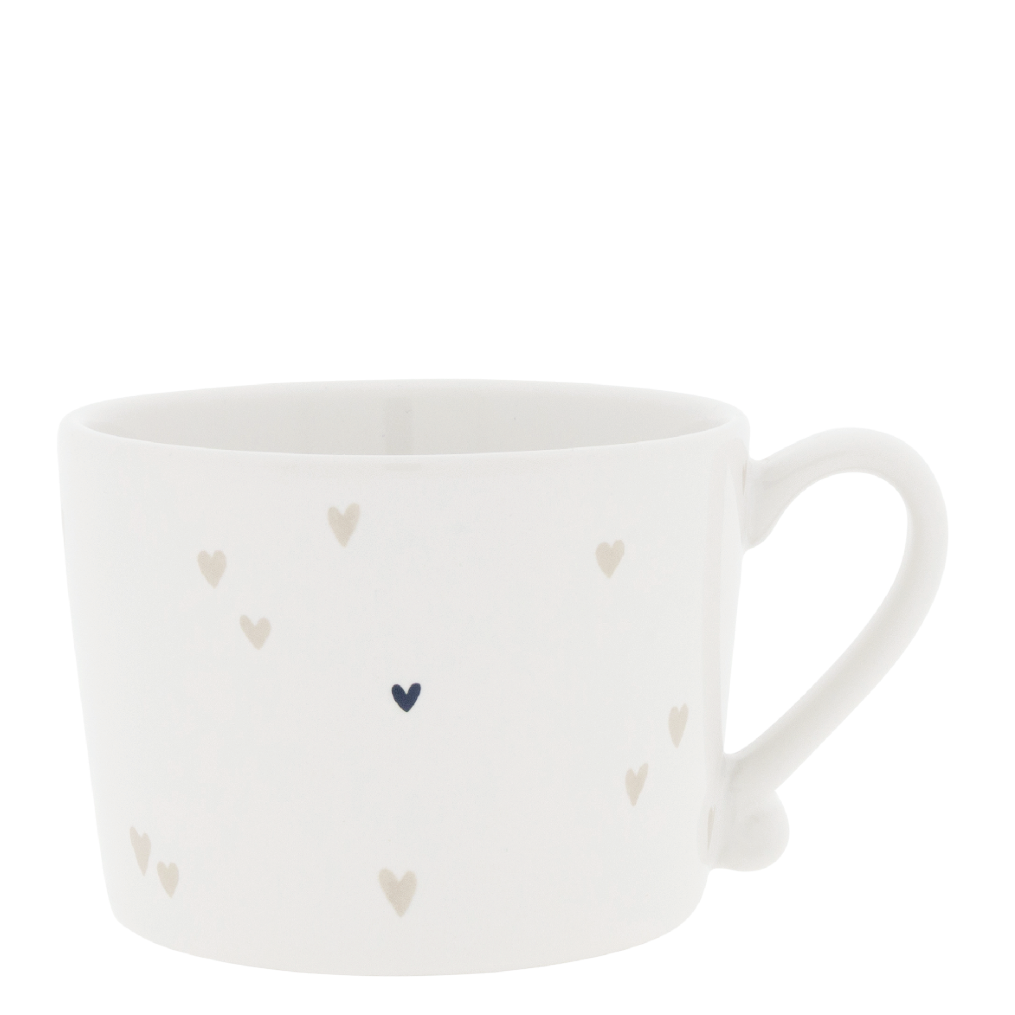 Diese liebevoll gestaltete Tasse „Hearts Natural“ von Bastion Collections bringt mit ihrem zarten Herzmuster eine warme, natürliche Note auf deinen Tisch. Die dezenten, hellen Herzen werden durch ein kleines dunkles Herz stilvoll ergänzt und machen jede Kaffeepause zu einem besonderen Moment.
