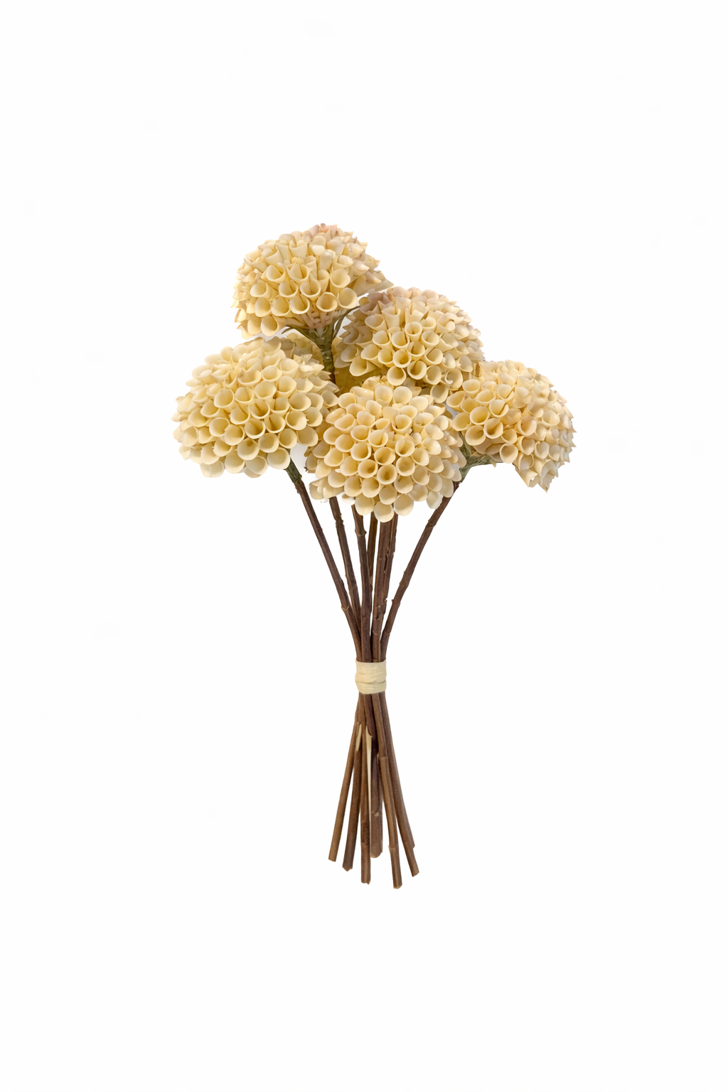 Das Dahlienbündel überzeugt durch seine naturgetreue Optik und die harmonische, cremefarbene Farbgebung. Der dekorative Seidenblumenstrauß besteht aus 7 sorgfältig gearbeiteten Dahlienblüten, die zu einem kompakten Bündel zusammengefasst sind. Die fein ausgearbeiteten Blütenköpfe mit ihrer detailreichen Struktur verleihen dem Arrangement eine hochwertige, natürliche Anmutung.