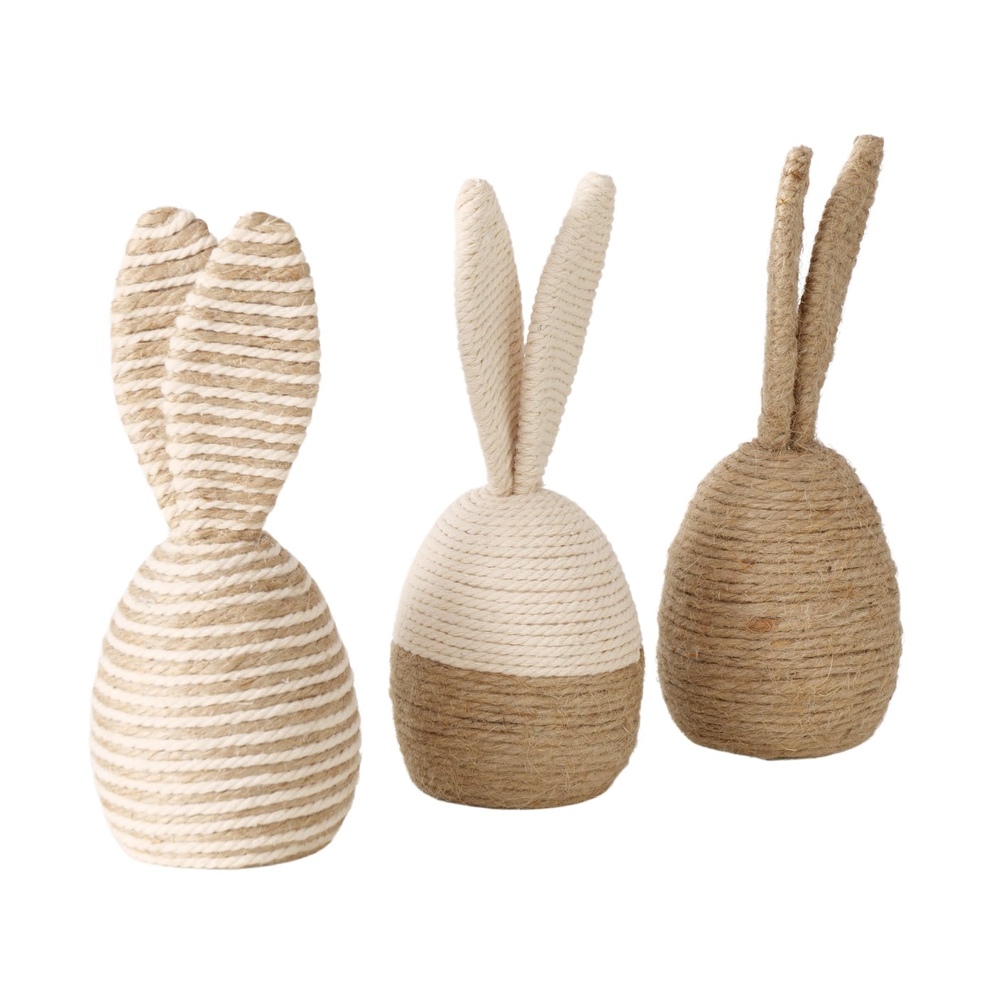 Der Eiaufsteller Nalio überzeugt durch seine natürliche Ausstrahlung und das handgearbeitete Design. Die dekorativen Eier in drei unterschiedlichen Varianten bestehen aus einer harmonischen Materialkombination aus Jute, Textil und Kunststoff und fügen sich ideal in saisonale Frühlings- und Osterdekorationen ein.