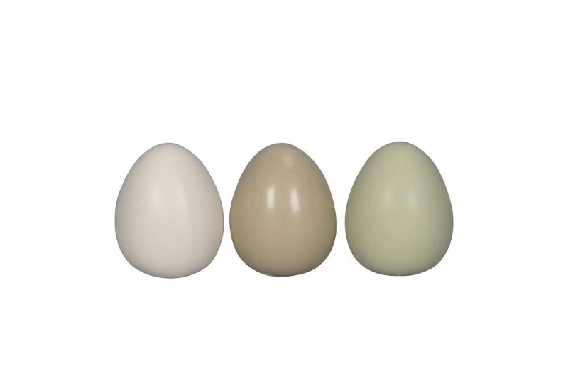 Die Eier sind in drei sanften Farben – Weiß, Braun und Grün – sowie in drei unterschiedlichen Größen erhältlich und lassen sich wunderbar kombinieren. Ob auf dem Ostertisch, im Regal, auf der Fensterbank oder als Teil eines dekorativen Arrangements: Diese Keramik-Eier setzen ruhige, elegante Akzente.