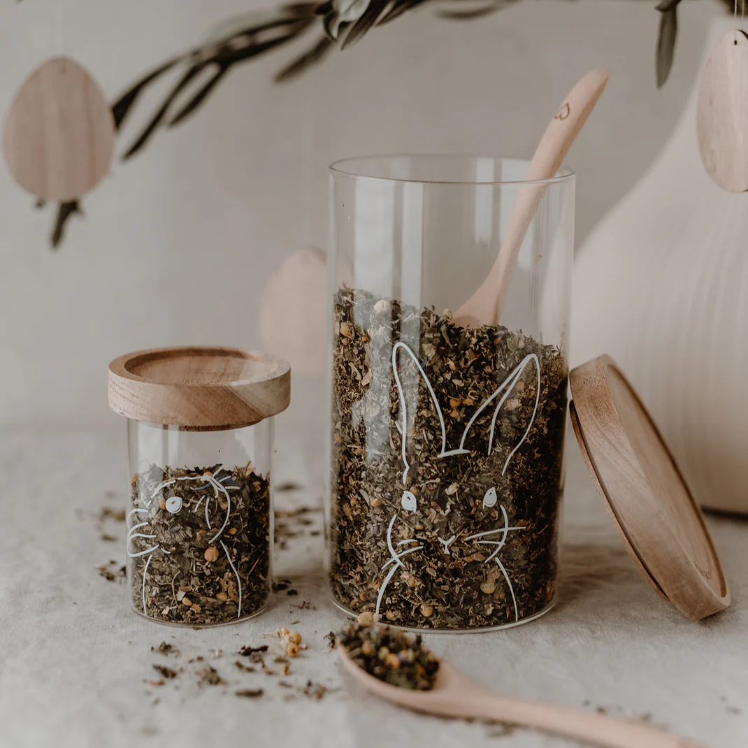 Eulenschnitt Vorratsglas Hasi 19 cm – Stilvolle Glasdose mit Akazienholz-Deckel & Hasen-Motiv