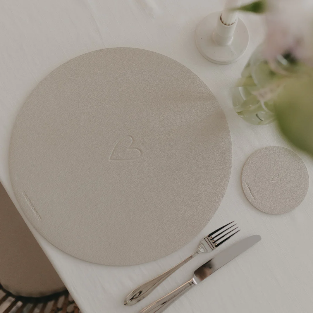 Gefertigt aus hochwertigem, pflegeleichtem PU-Leder, bietet das Set zwei harmonische Farbseiten in Creme und Beige. Die Vorderseite ziert der tiefgründige, blindgeprägte Schriftzug "Das Leben ist zu kurz für irgendwann", der uns täglich daran erinnert, den Moment zu genießen. Die edle Leder-Optik verleiht Ihrem gedeckten Tisch eine hochwertige Haptik, während die praktische Abwischbarkeit das Platzset zum idealen Begleiter im turbulenten Alltag macht.