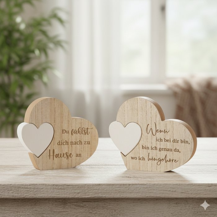 Erhältlich in zwei Varianten mit unterschiedlichen Spruchmotiven, eignet sich der Herzaufsteller ideal als dekoratives Statement für ein gemütliches Zuhause oder als emotionales Geschenk.