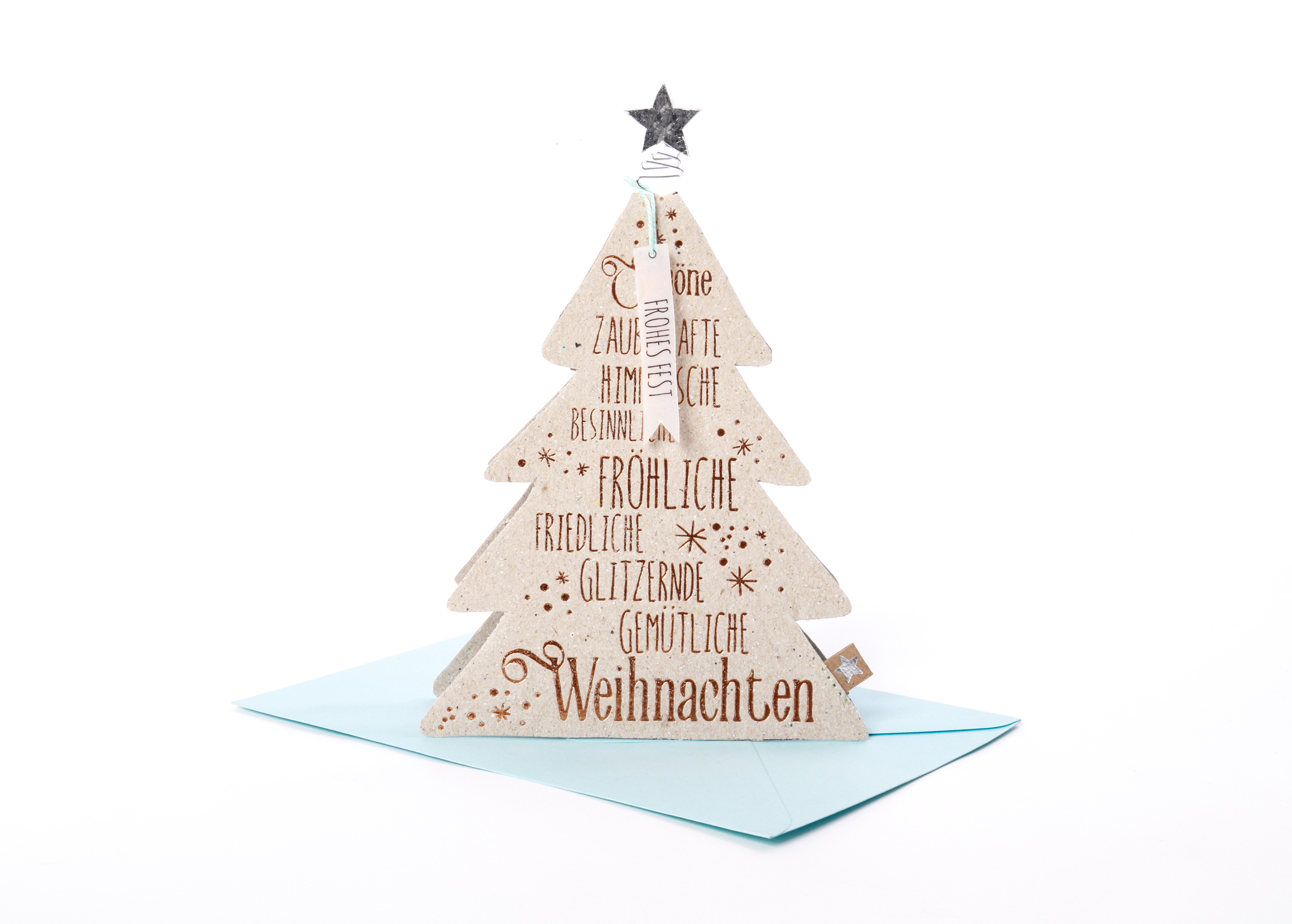 Spitze! Diese fein bedruckten Bäumchen lassen sich Innen mit lieben Worten und Weihnachtswünschen beschreiben und aufstellen.Sie haben an der Spitze eine feine Applikation aus Draht. Damit sind sie nicht nur Weihnachtskarte, sondern auch eine wunderschöne Dekoration.