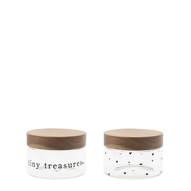 Variante 1 „Tiny Treasures“: Mit dem verspielten schwarzen Schriftzug „tiny treasures“ – perfekt für die kleinen Kostbarkeiten des Alltags.