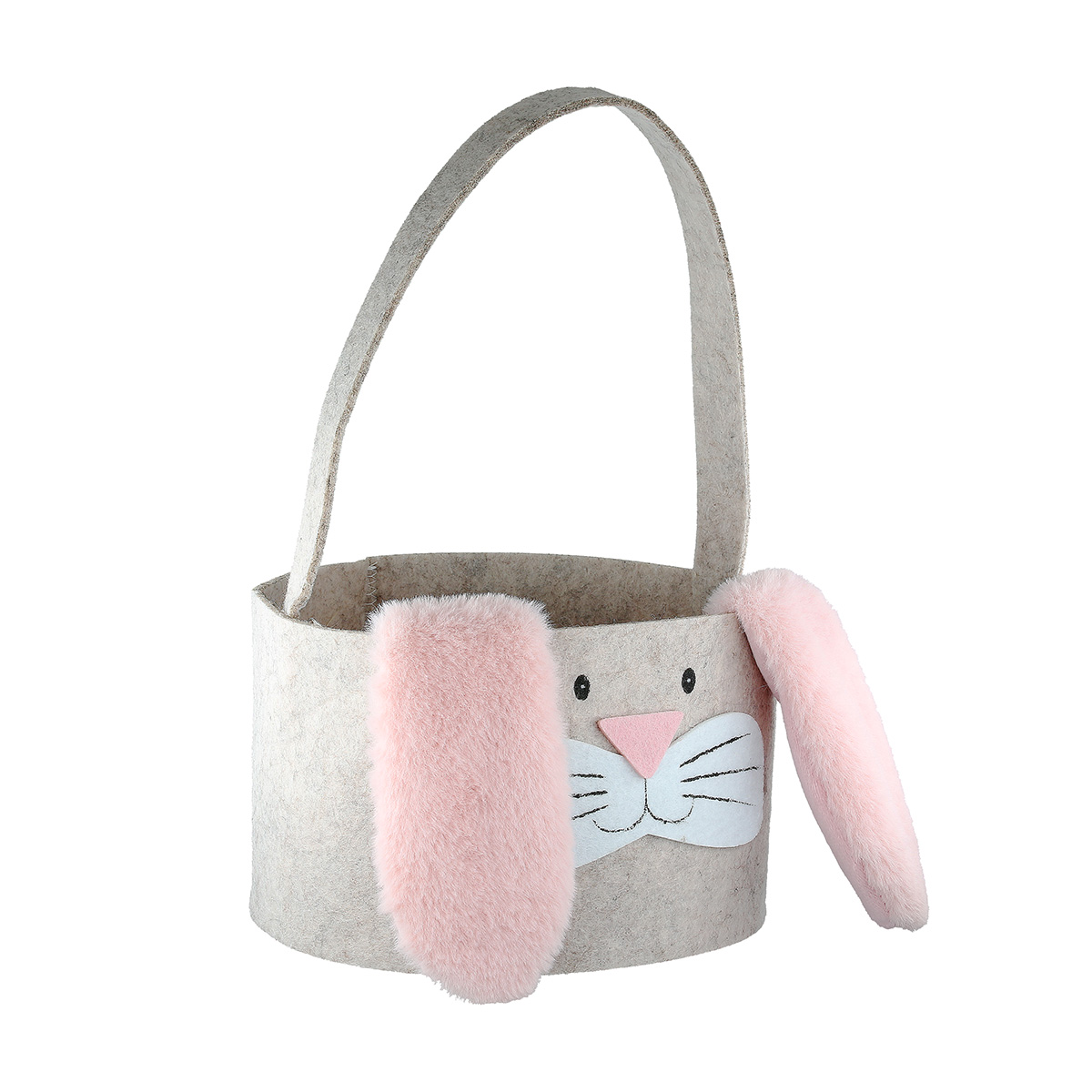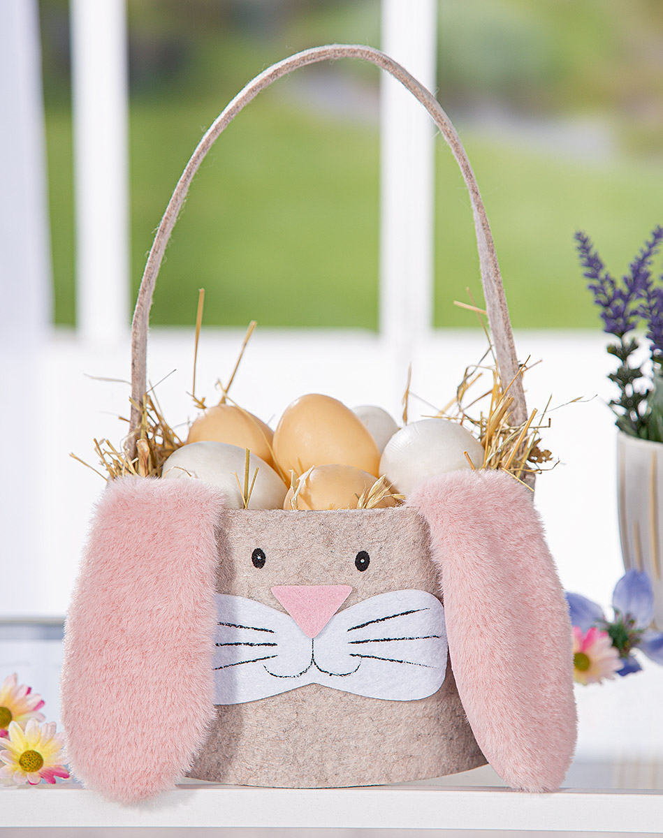 Machen Sie die Ostereiersuche zu einem flauschigen Erlebnis! Dieses charmante Osterkörbchen aus grauem Filz besticht durch sein liebevolles Hasengesicht und die extra weichen, rosa Schlappohren aus Plüsch. Dank des stabilen Henkels ist es der ideale Begleiter für kleine Entdecker bei der Suche im Garten oder eine zauberhafte Geschenkverpackung für Süßigkeiten und kleine Überraschungen auf dem Ostertisch.
