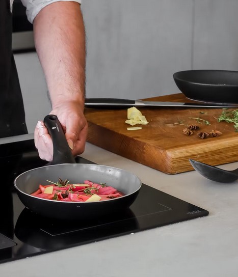 Die Pfanne hat eine kratzfeste, antihaft Beschichtung aus Keramik die so effektiv ist, dass man sie ohne, oder nur mit wenig Öl verwenden kann. Der Aufbau aus Aluminium sorgt für eine schnelle, gleichmäßige Erwärmung. Die Can-to-Pan Serie bietet Töpfe und Pfannen in allen wichtigen Größen. MasterClass steht für einfache, innovative und hochwertige Produkte die dafür gemacht sind ein Leben lang zu halten.