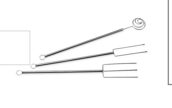 Pralinen selbst gemacht! Stellen Sie mit unserem Pralinengabel-Set professionell Ihre eigenen Pralinenkreationen her: Tauchen Sie den Pralinenkörper mithilfe der Spiralgabel in das Schokoladenbad, mit den beiden schmalzinkigen Gabeln können Sie die Praline anheben und ablegen, mit den Gabeln können Sie Muster in den Pralinen-Überzug dekorieren.