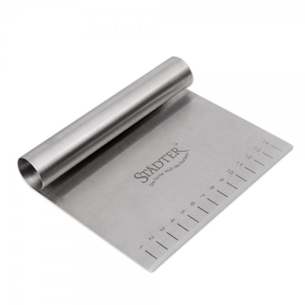 Die Teigkarte liegt sehr gut in der Hand. Griff und Karte sind aus einem Stück gefertigt, so lässt sie sich gründlich reinigen. Die Teigkarte ist aus hochwertigem Edelstahl gefertigt und ist rostfrei, spülmaschinenfest, lebensmittelecht.
