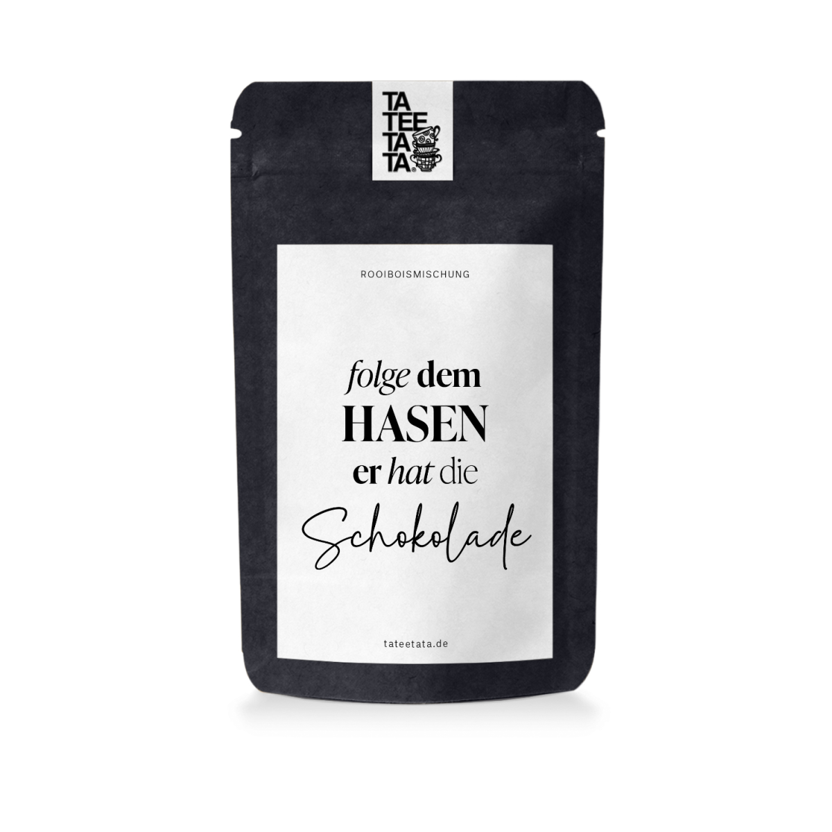 Produktbeschreibung: Wer braucht schon echte Eier, wenn er diesen Tee haben kann? Der Rooibostee „Folge dem Hasen – er hat die Schokolade“ von TaTeeTaTa ist das ultimative Highlight für alle Schokoholics und Osterfans. Mit dem humorvollen Spruch auf der Verpackung ist er das perfekte Geschenk für alle, die wissen, dass der Osterhase die besten Vorräte hütet.