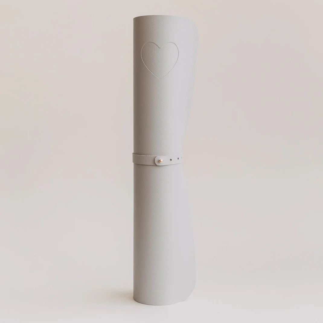 Minimalistisches Design: Zeitloses Grau mit charmantem weißem Herz-Motiv.