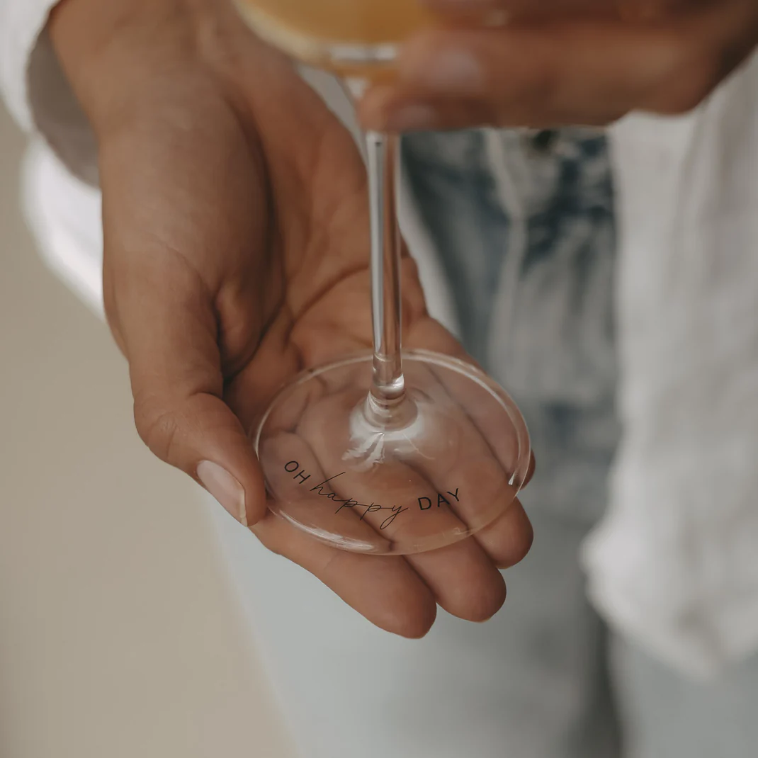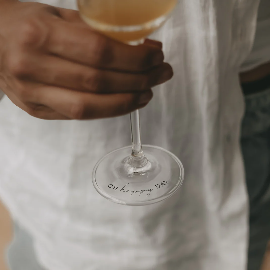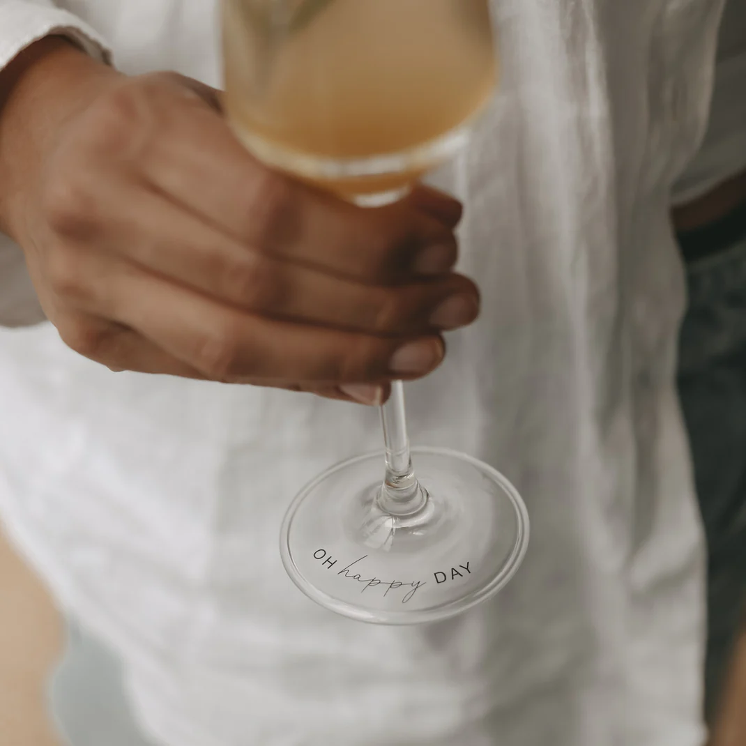 Gefertigt aus dünnwandigem, brillantem Kristallglas, besticht dieses Glas durch seine elegante Form. Das Highlight ist der liebevoll gestaltete Schriftzug „Oh Happy Day“ sowie das für Eulenschnitt typische kleine Herz am Boden des Glases. Ob für die Hochzeit, den Geburtstag oder den entspannten Mädelsabend – dieses Glas macht jeden Schluck zu einem kleinen Fest.
