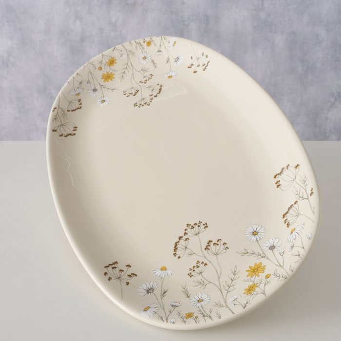 Die Servierplatte „Meadow“ überzeugt durch ihr zeitloses Design und die feinen floralen Illustrationen. Gefertigt aus hochwertigem Steinzeug und handgearbeitet, vereint sie natürliche Eleganz mit funktionaler Alltagstauglichkeit. Das zarte Blumenmuster in harmonischen Naturtönen verleiht der Platte eine leichte, frühlingshafte Ausstrahlung und macht sie zu einem stilvollen Blickfang auf jeder Tafel.
