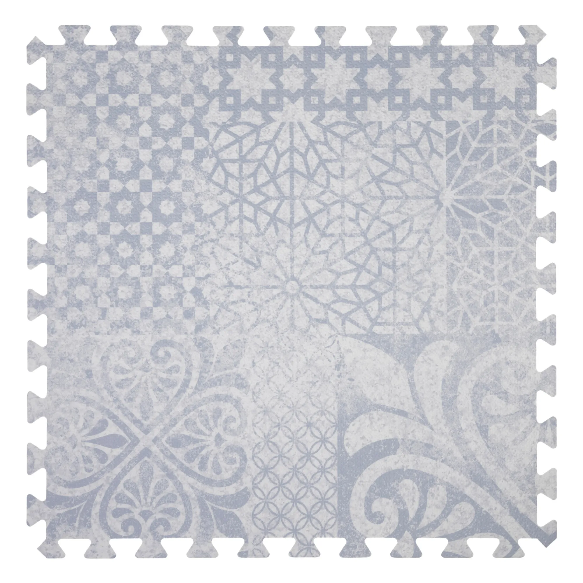 Lieferumfang: 6 Puzzleteile (jeweils 60 x 60 cm) und 12 Randeinfassungen für einen nahtlosen Look