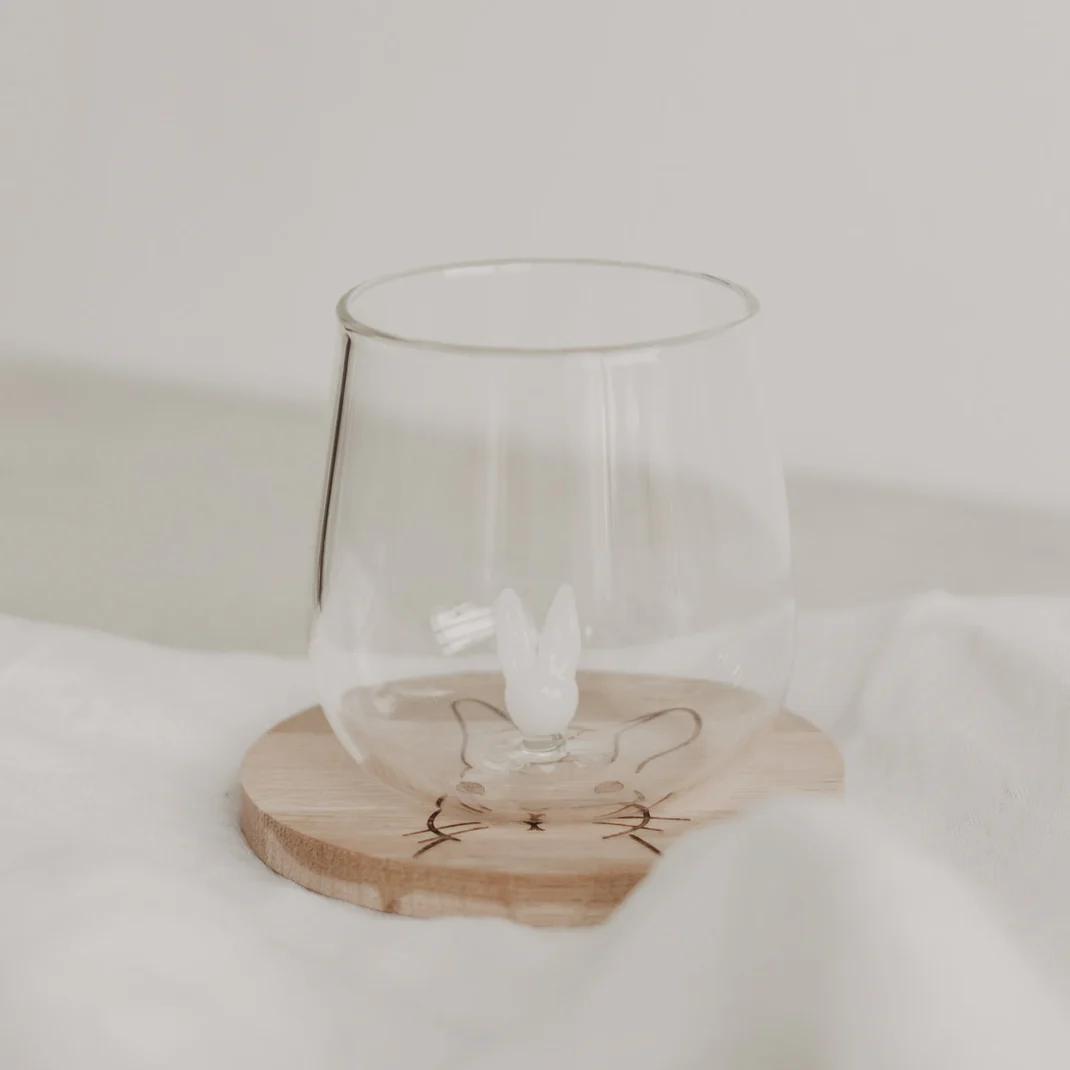 Eulenschnitt Trinkglas mit Hasenfigur – Handgefertigtes Glas aus Borosilikatglas mit Herz-Detail (400 ml)
