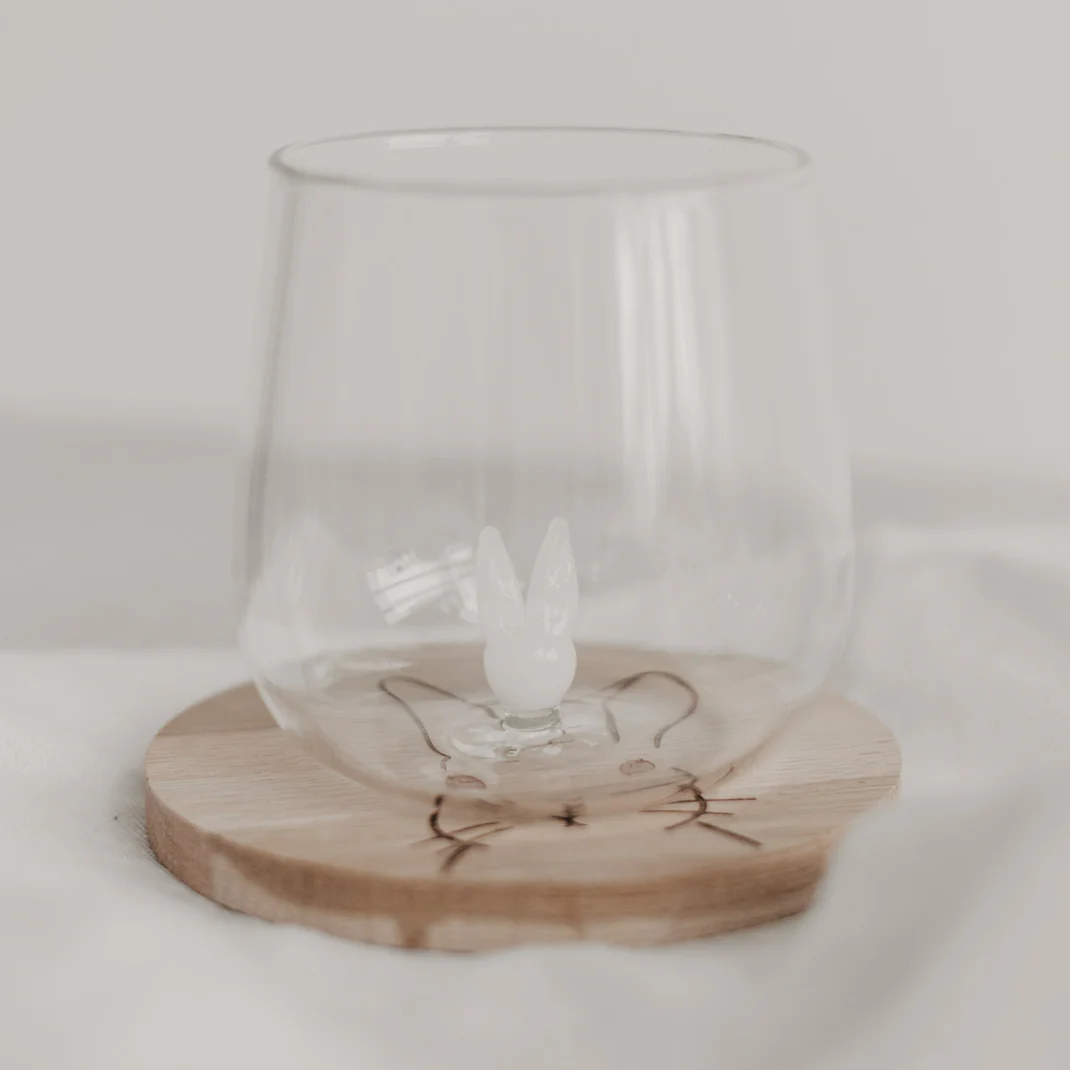 Das Glas ist aus hochwertigem Borosilikatglas gefertigt, was es trotz seiner feinen Optik besonders stabil, hitzebeständig und langlebig macht. Sobald Sie Wasser, Saft oder eine sommerliche Schorle einschenken, scheint das Häschen im Getränk zu sitzen – ein zauberhafter Effekt, der nicht nur Kinderaugen zum Leuchten bringt. Perfekt für das Osterfrühstück, den Frühlings-Brunch oder als liebevolles Geschenk im Nest.