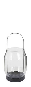 Die Laterne „Caldera“ vereint schlichte Eleganz mit moderner Formensprache. Der klare Glaskorpus sorgt für ein harmonisches Lichtspiel, während der Metallboden und Griff Stabilität und einen stilvollen Kontrast verleihen.