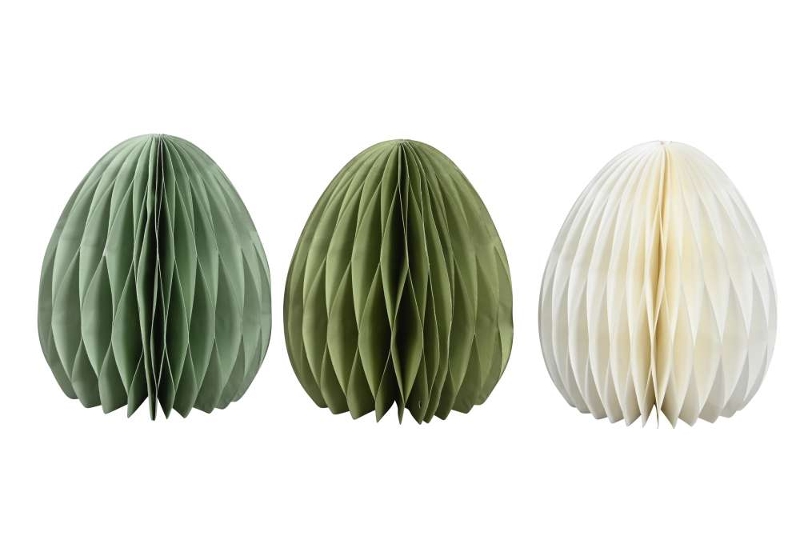 Dank der Wabenstruktur entsteht eine schöne 3D-Form mit besonderer Tiefe. Die Eier lassen sich mit wenigen Handgriffen aufstellen und sind ideal für Tischdekorationen, Fensterbänke, Regale oder Sideboards. Nach der Saison können sie platzsparend zusammengefaltet und verstaut werden.