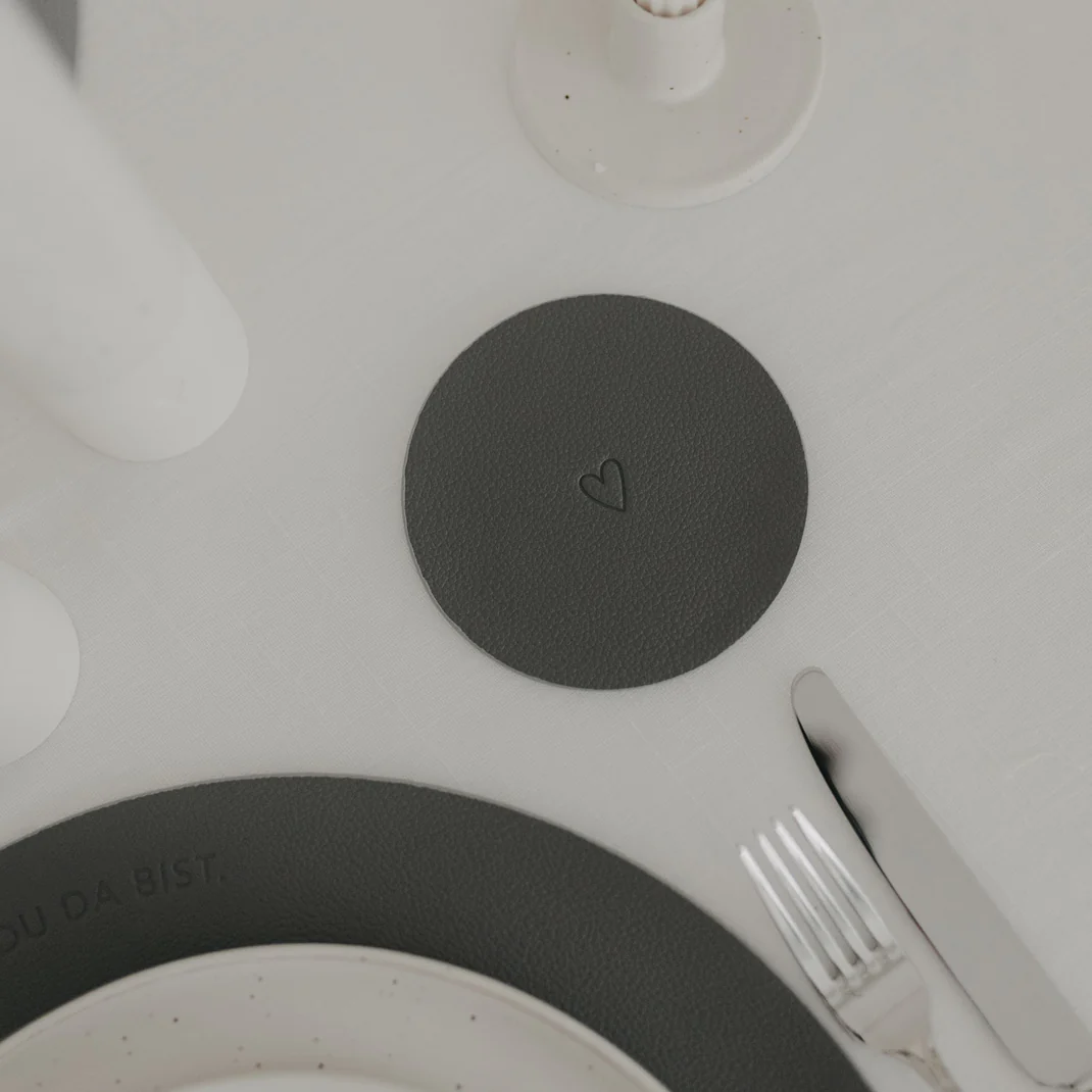 Eulenschnitt 2er Set Wendbare Untersetzer Herz – Hochwertige Glasuntersetzer in Grau & Anthrazit aus PU-Leder