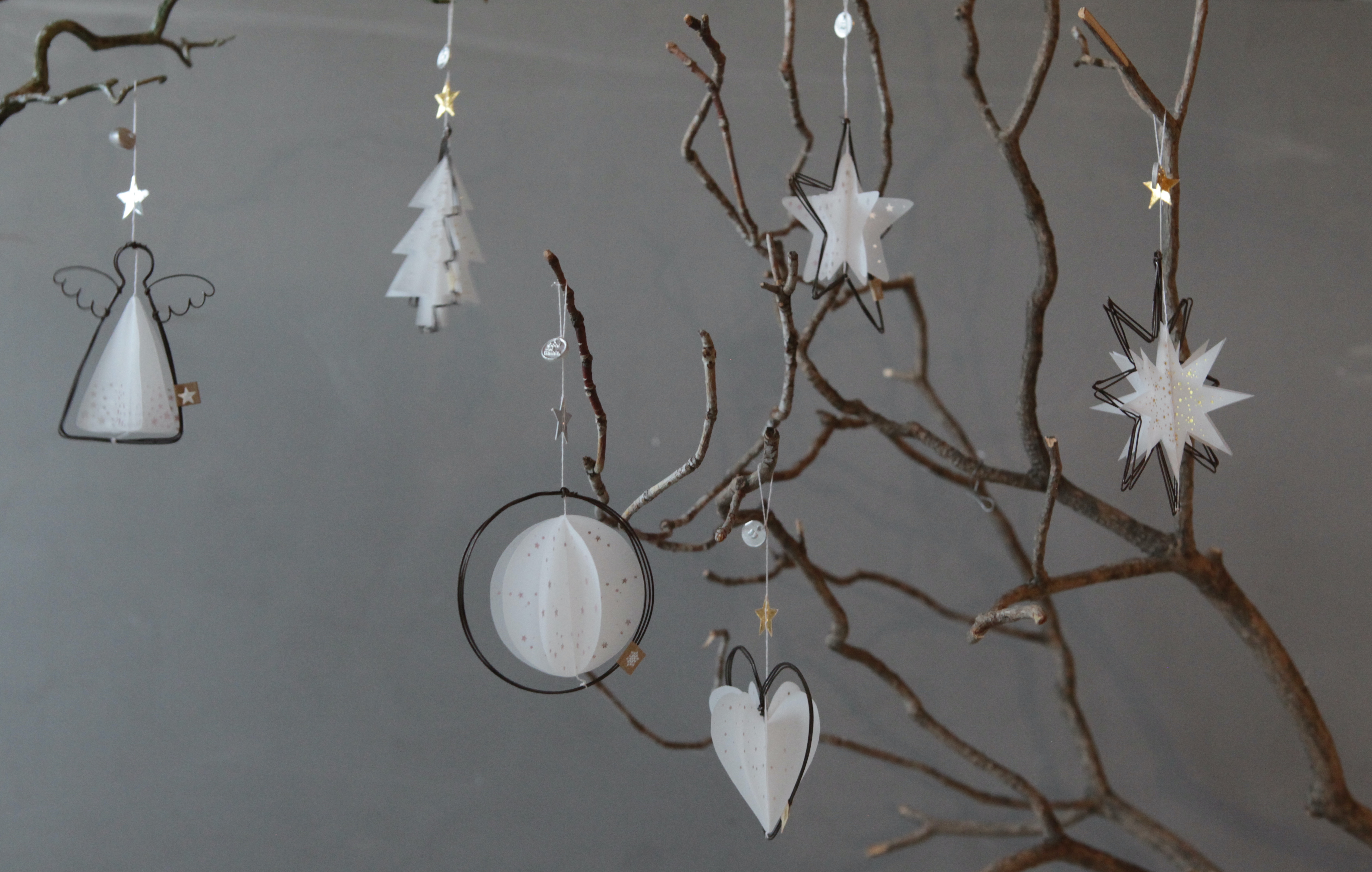 Material: Ornamente aus Draht und Transparentpapier