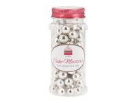 Silberne Zucker-Perlen mit Puffreis-Kern. Ideal für Hochzeit, Geburtstag, Jubiläum uvm.