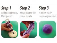 The Rainbow Dust ProGel is very concentrated and the ultimate for food dyeing. Even a small amount of ProGel can give your creations intense colours. With one tube you can get by for a long time. Simply add a little ProGel to your fondant, marzipan, butte