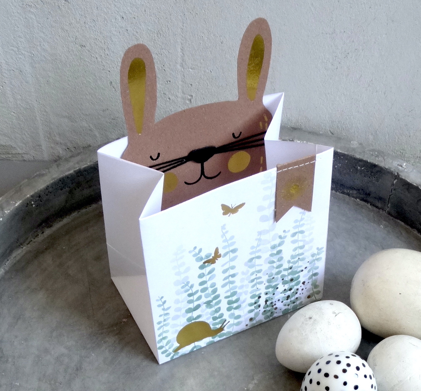 Material: Bags made of printed paper with rabbit card for writing.