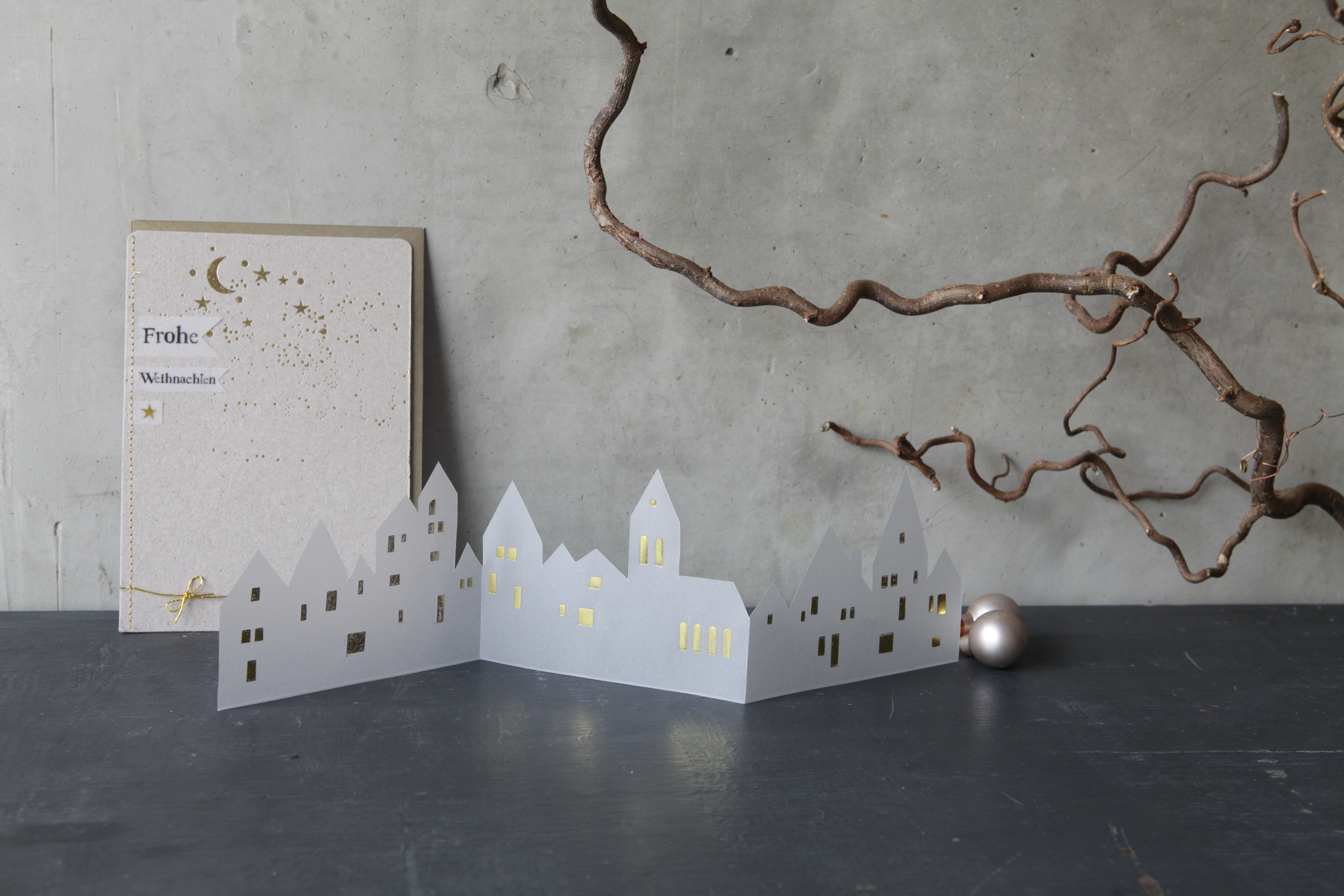 Send joy! With this card you not only send kind words, but also a small piece of winter decoration. Delicate silhouettes made of printed tracing paper conjure up a small winter landscape in the home.