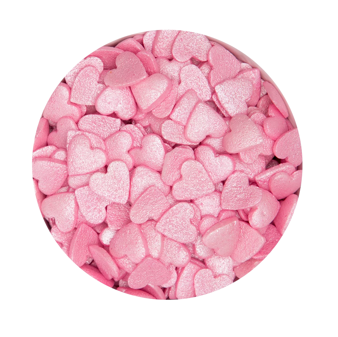 Charming Appearance: Small, uniformly shaped sugar hearts in intense pink.